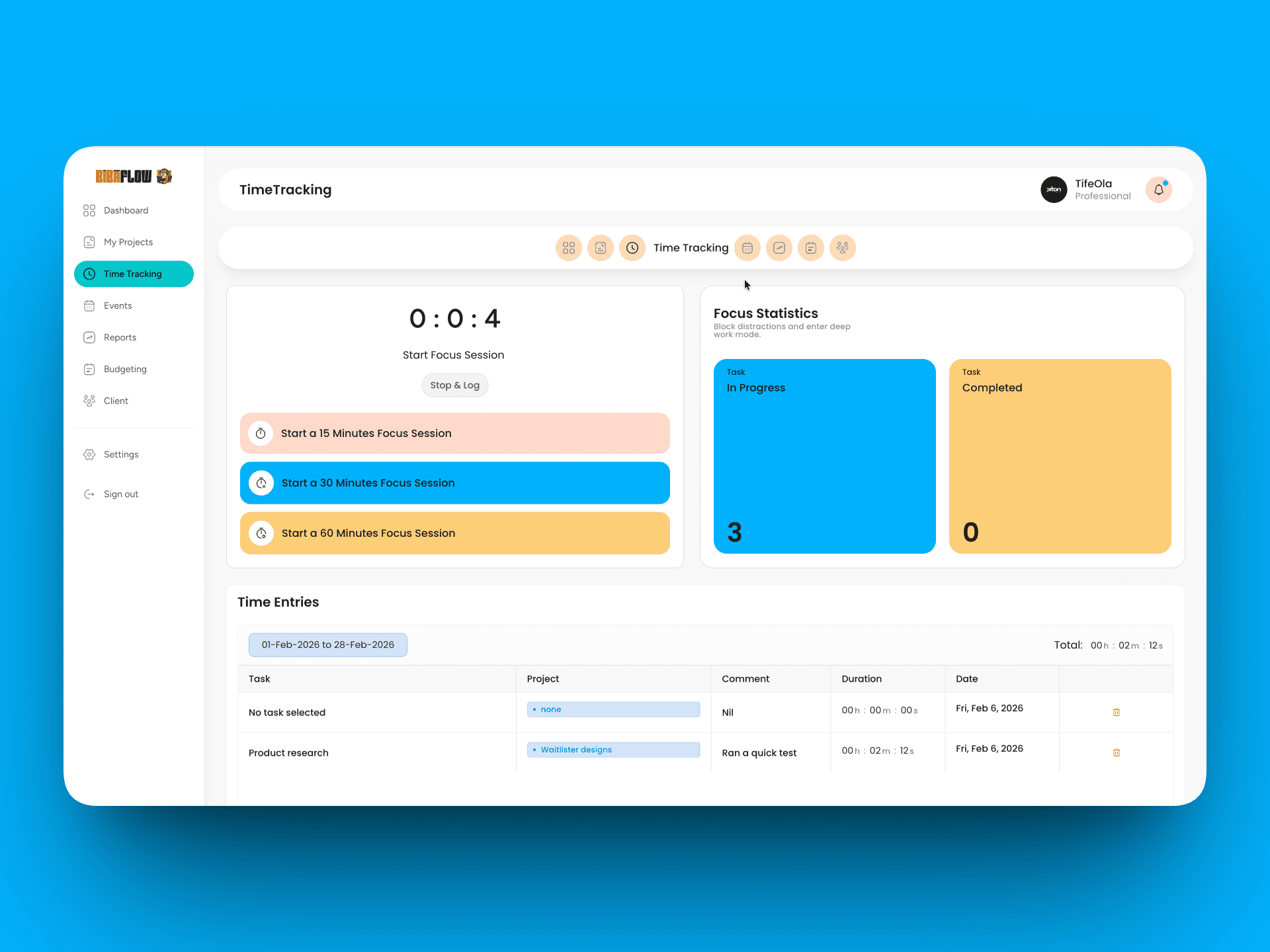 We built BibaFlow as a custom internal productivity and operations tool for the client’s team to manage projects, tasks, time tracking, and collaboration in one centralized system. The goal was to replace a fragmented set of tools with a single, purpose-built platform tailored to the team’s real workflows.